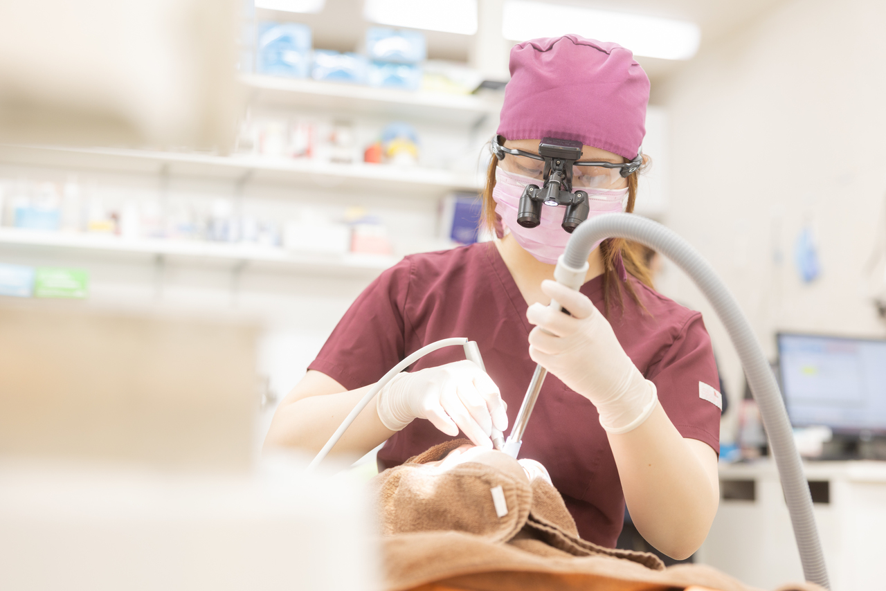 当院は、位相差顕微鏡、PCR検査の導入、歯周内科治療も実施しており、歯科衛生士さんのスキルをしっかり活かせる環境です。